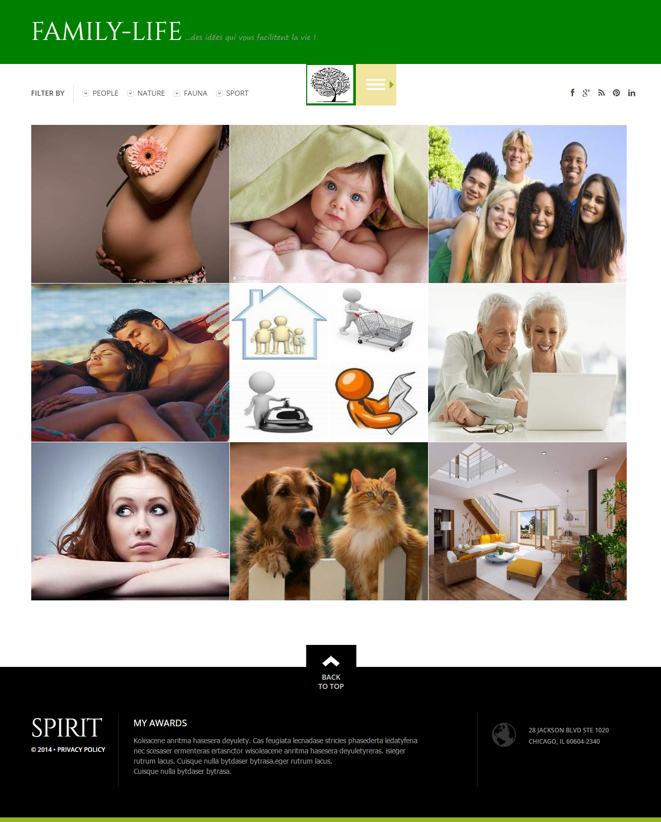 Premier modèle de la page de accueil pour un site qu'offre de services familières. Ce premier modèle correspond à un projet originale en php y javascript. Le site est adaptable (responsive) et présente un effet de agrandissement de l'image au passage de la souris.