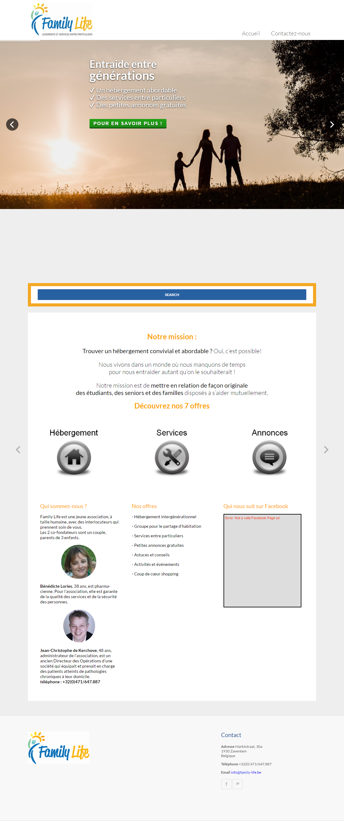Version finale du site de Family-Life. Le site a été fait avec Wordpress, en utilisant le thème Travelo. La page d'accueil a été changé, comportant un coulisseau (slider) dans le background de la page d'accueil, avec un texte fixe sur lui.