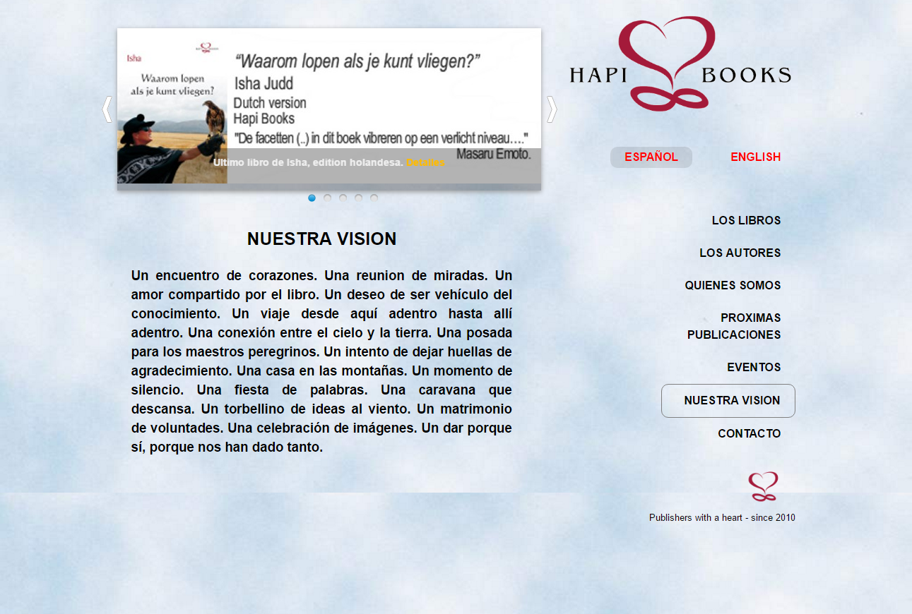 Website pour une petite maison éditrice développé à partir de une version antérieur, qui était en flash (ne fonctionnant pas dans certains tablettes ou gsm). J'ai utilisé le framework grid 960 ainsi que php et un captcha très simple pour les emails (en Espagnol et Anglais). Le site permettre d'acheter online les livres en utilisant Amazon.